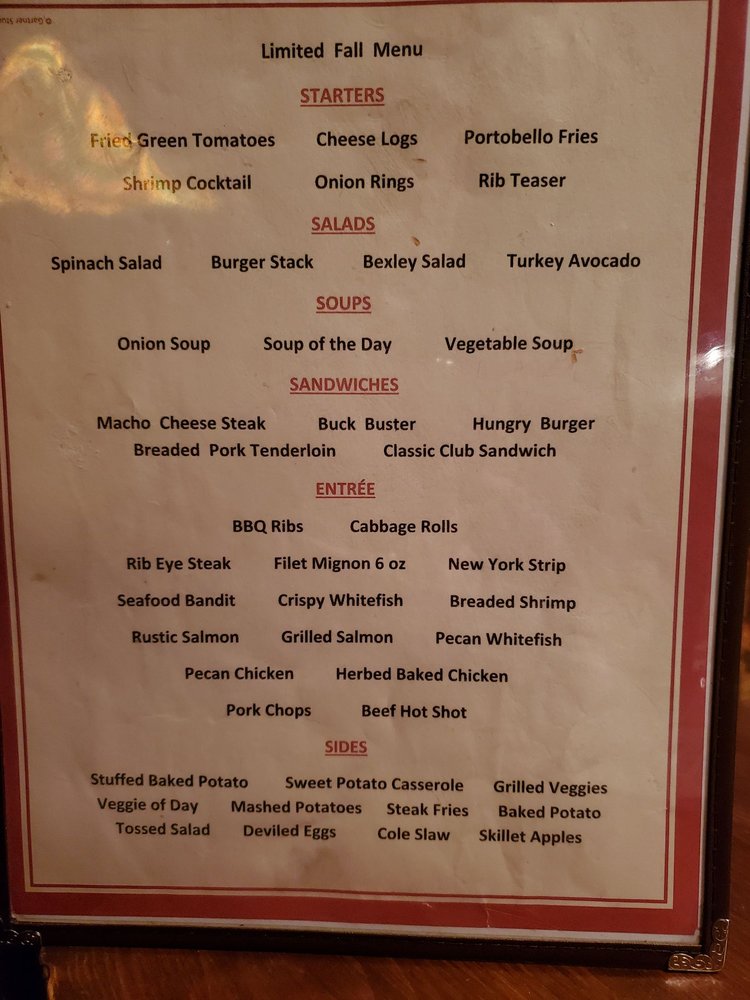 Buckhorn Tavern Menu
