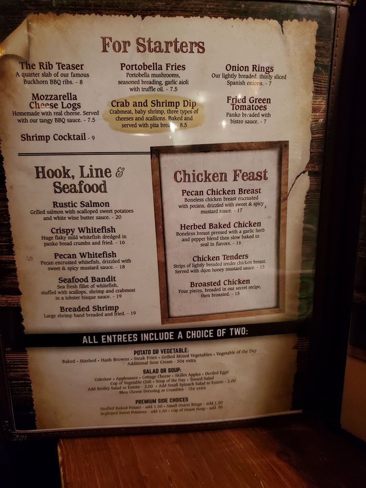 Welcome to Buckhorn Tavern, a hidden gem in Dayton, Ohio offering a variety of mouth-watering dishes. This quaint steakhouse boasts a cozy ambience and exceptional service, making it a must-visit spot for food enthusiasts. Indulge in delectable starters like the famous Buckhorn BBQ ribs and homemade mozzarella cheese logs. For a lighter option, try the Burger Stack or Chicken Tenders Salad. Seafood lovers will delight in the Bistro Salmon or Seafood Bandit. Customer reviews rave about the quality of the food and service, with many highlighting the superb steaks and delightful sides. Buckhorn Tavern is the perfect destination for a memorable dining experience with friends and family. Come and savor the flavors at Buckhorn Tavern – you won't be disappointed.